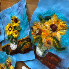 Dive into the world of needle felting with our relaxing small group workshops. Over four hours in this relaxing felting class, you will learn the art of transforming something as simple as wool into a stunning masterpiece. Don't worry if you've never tried felting before - this workshop is designed for beginners. Our experienced instructor Liddy will guide you through each step, ensuring that you feel confident and inspired. With her expert guidance, you'll learn how to fuse wool fibres into beautiful shapes and blend colours to create depth and texture. Finally framing within a window mount will complete your amazing artwork Fri 8th May 10.30am - Vincent's Sunflowers